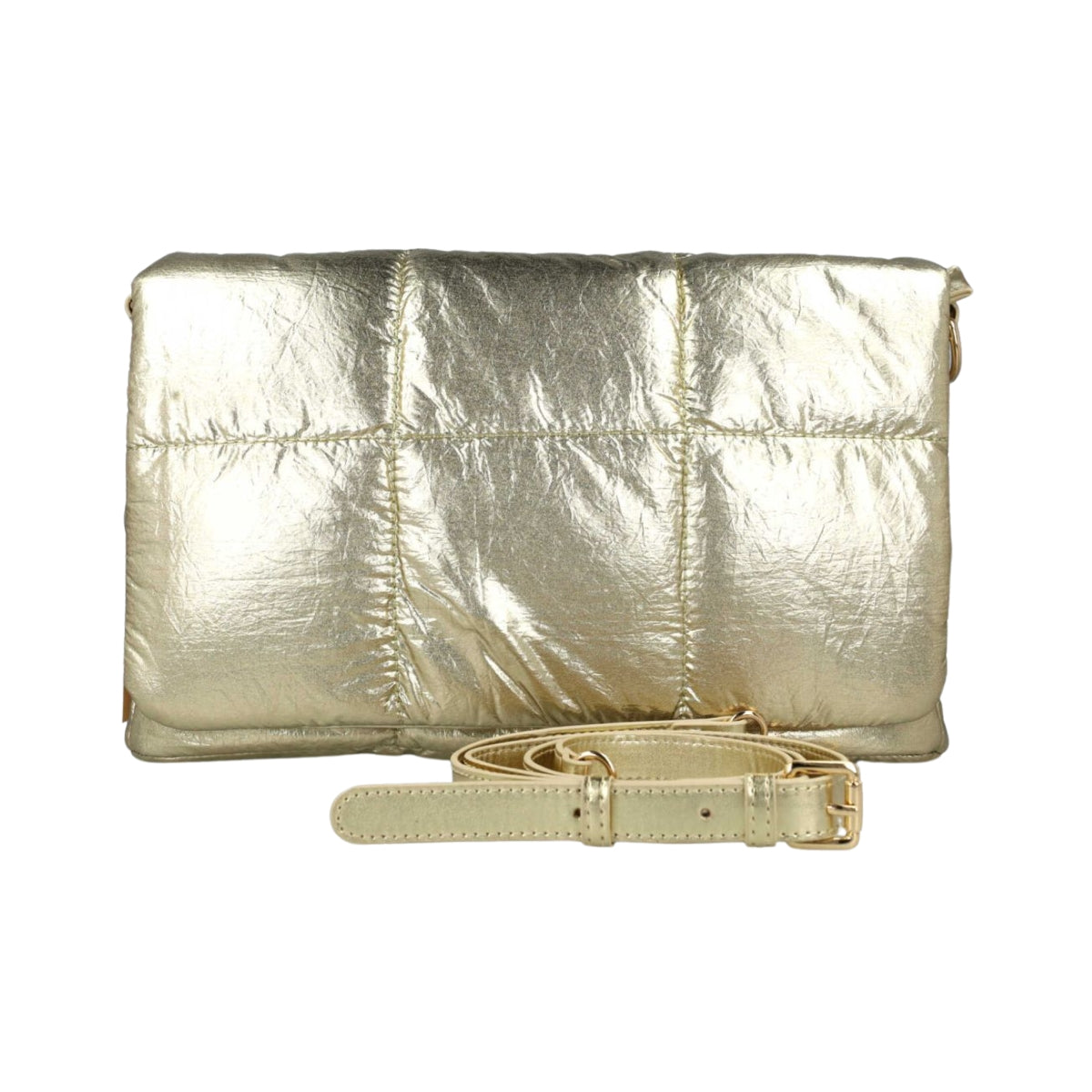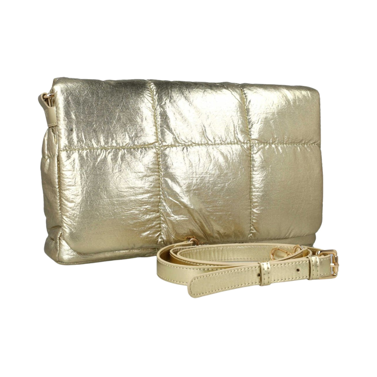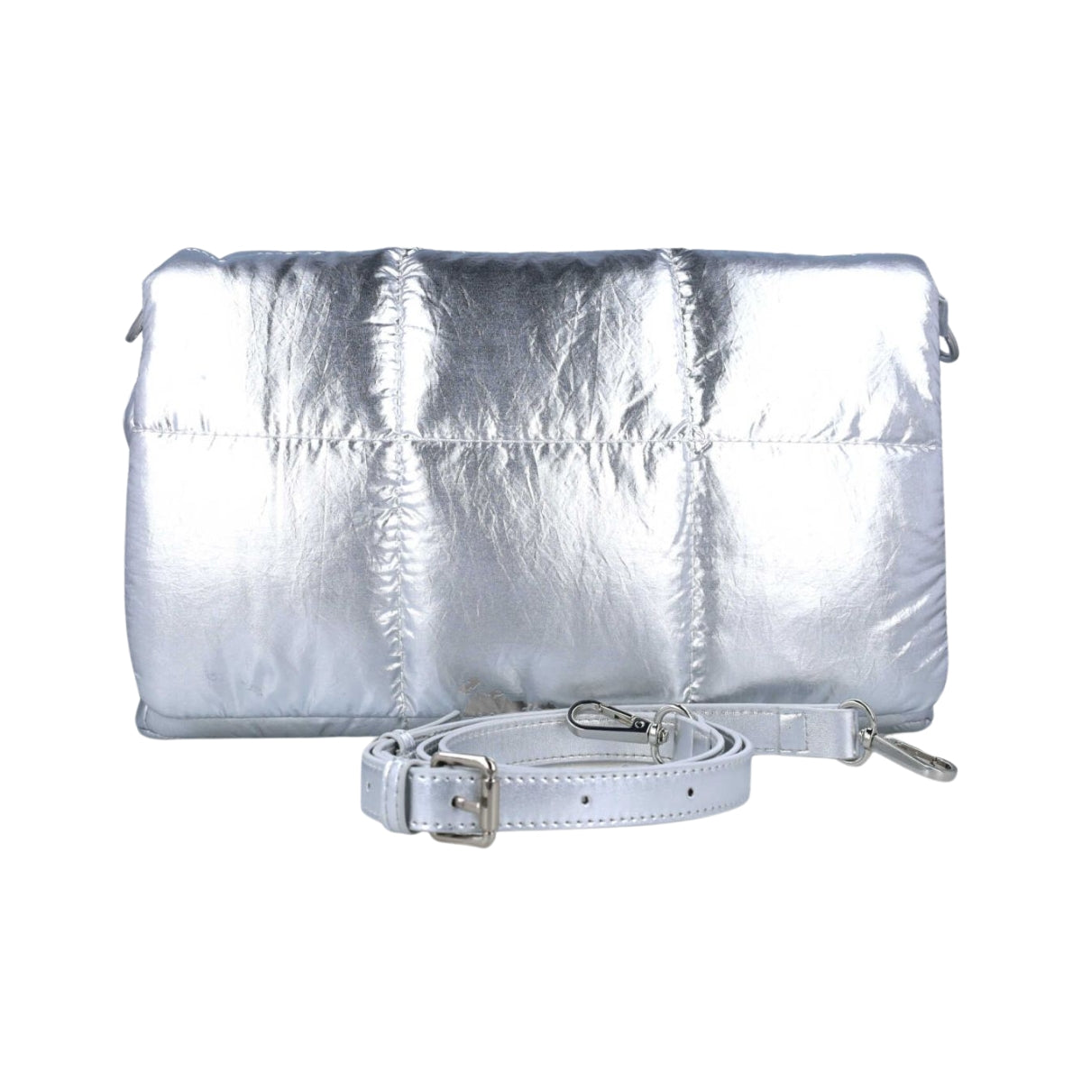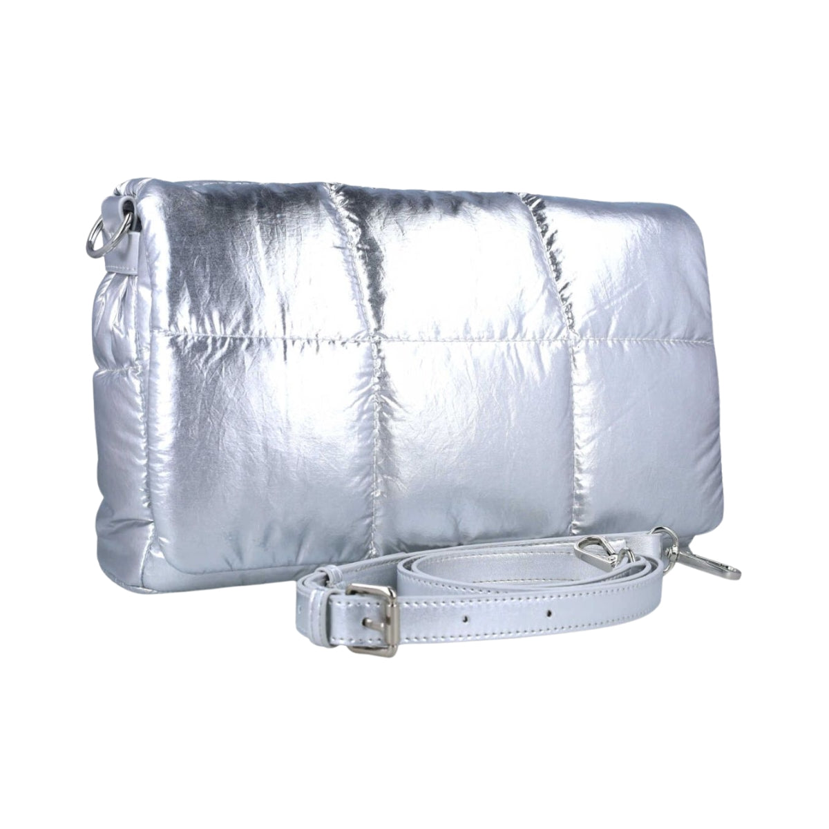 A contemporary shoulder bag from Menbur, Haddingjar MB6 features a soft, cushion-quilted body with a metallic finish for modern shine. Sized for daily essentials, it includes an adjustable crossbody strap for hands-free wear and a detachable chain for evening polish.
