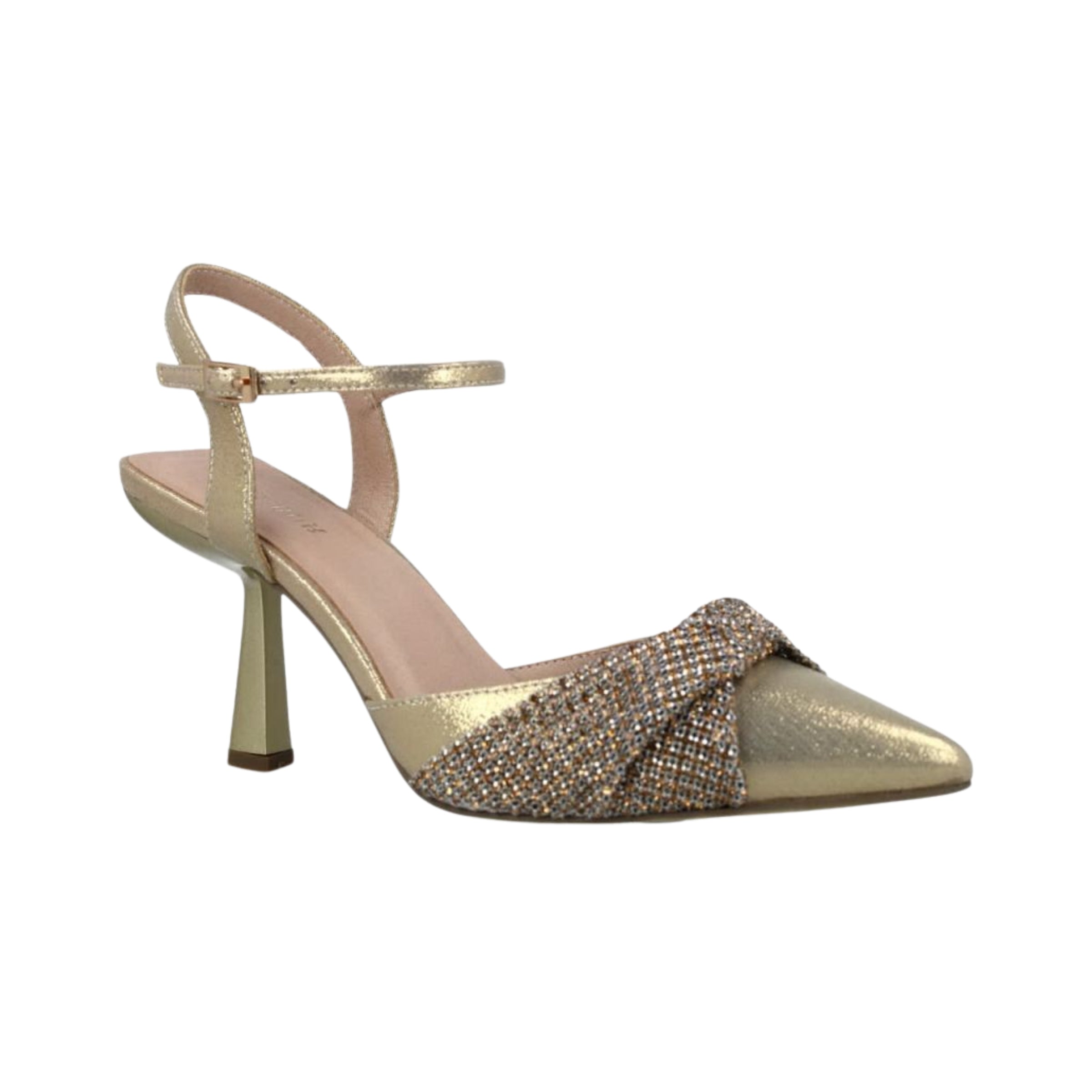 An elegant mid-heel sandal from Menbur, Lucina MH62 features a knotted, crystal-embellished front and slim ankle strap for a refined, light-catching finish. The balanced 6.5 cm heel and cushioned footbed provide poised comfort for weddings, evening events, and polished occasion wear.