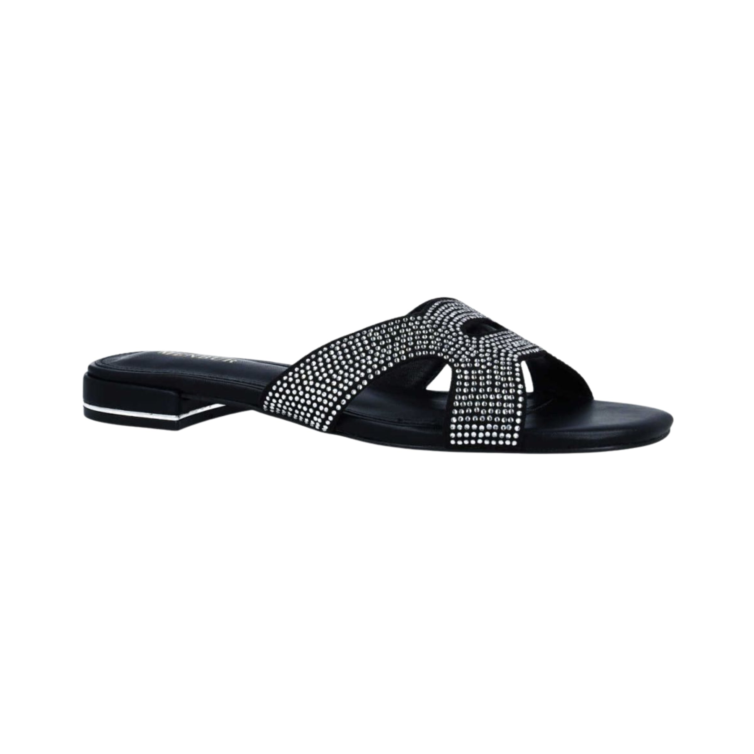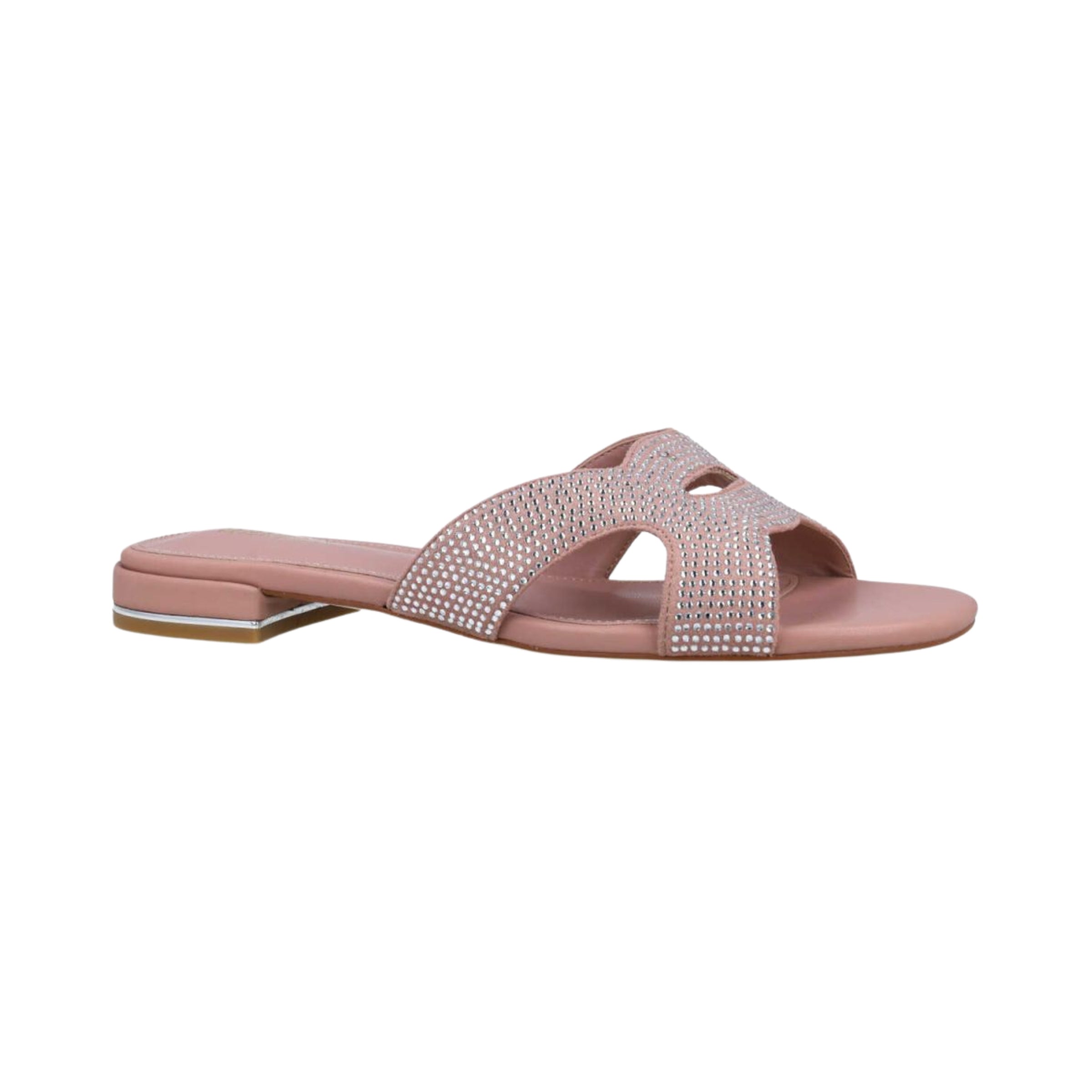 A polished slide from Menbur, Mana MSA18 features an X-strap upper set with silver studs for subtle sparkle and an easy slip-on fit. A low 2.0 cm heel and cushioned footbed provide light lift and everyday comfort, making it a versatile choice for warm-weather outfits and relaxed occasion looks.