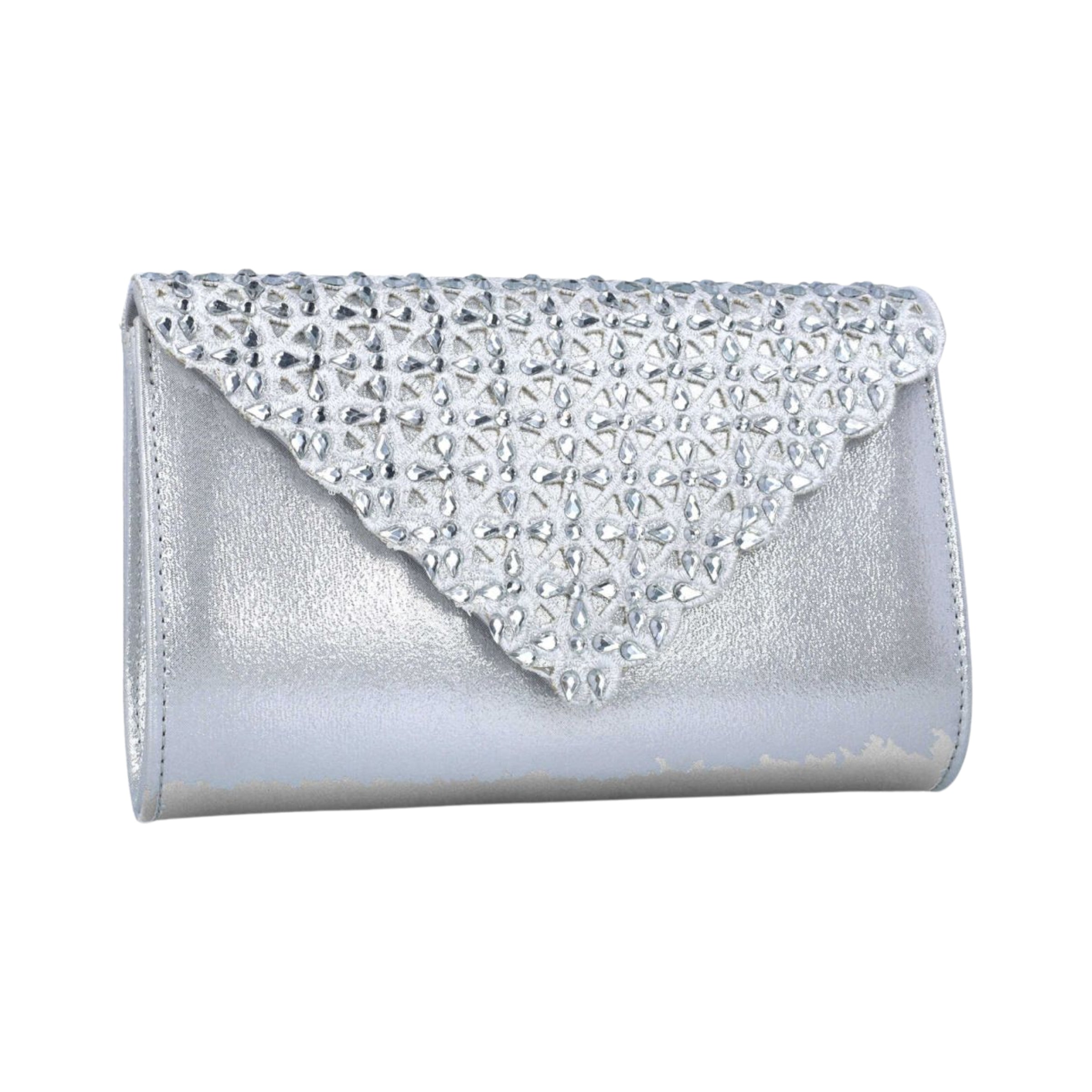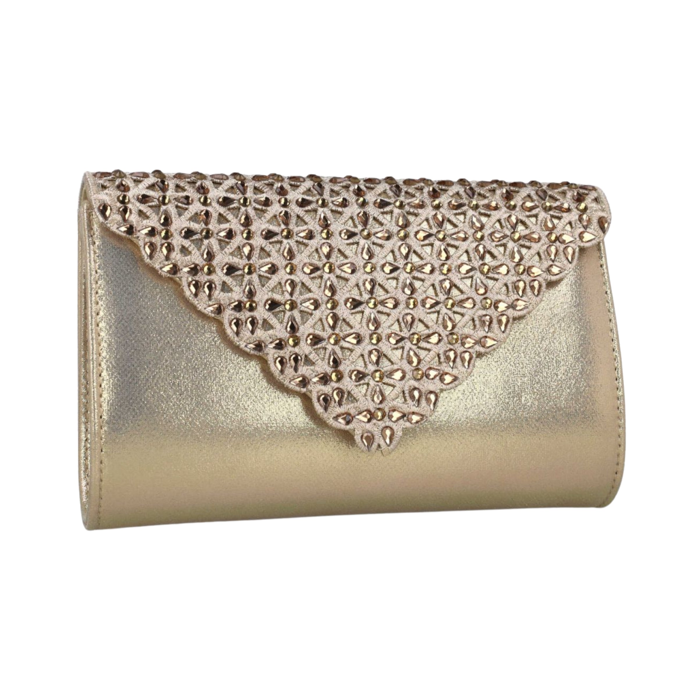 A refined occasion clutch from Menbur, Mantus 1 MB34 features a metallic body topped with a knitted lace flap for textured shine. Compact and elegant, it carries essentials and includes a detachable chain so it can be worn on the shoulder or carried by hand.