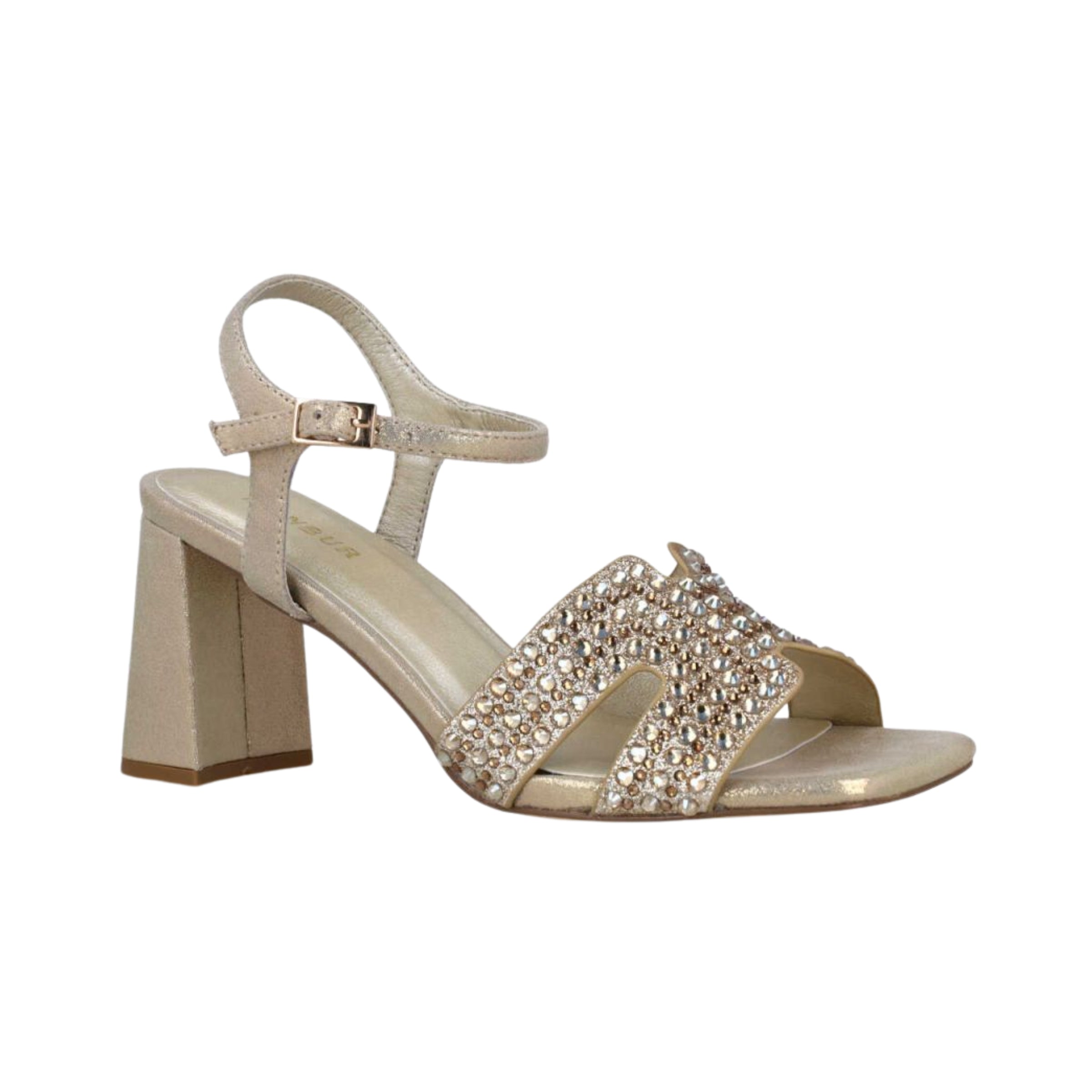 A chic mid-heel sandal from Menbur, Matuta MM24 features a stud-embellished front strap, slim ankle buckle, and stable block heel for confident, evening-ready style. The 6.5 cm lift and cushioned footbed balance elegance with comfort for weddings, events, and polished summer outfits.