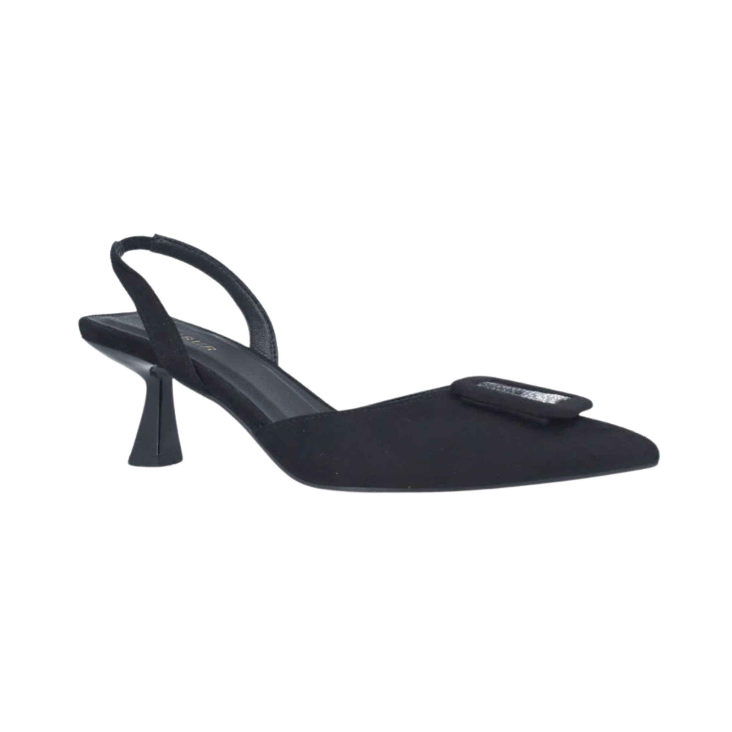 A refined slingback from Menbur, Nerio MM16 pairs a pointed toe and sculptural mid heel with a statement square buckle for polished occasion style. The 7.5 cm lift is balanced by a cushioned footbed and secure slingback strap, delivering confident elegance for weddings, events, and elevated day-to-night looks.