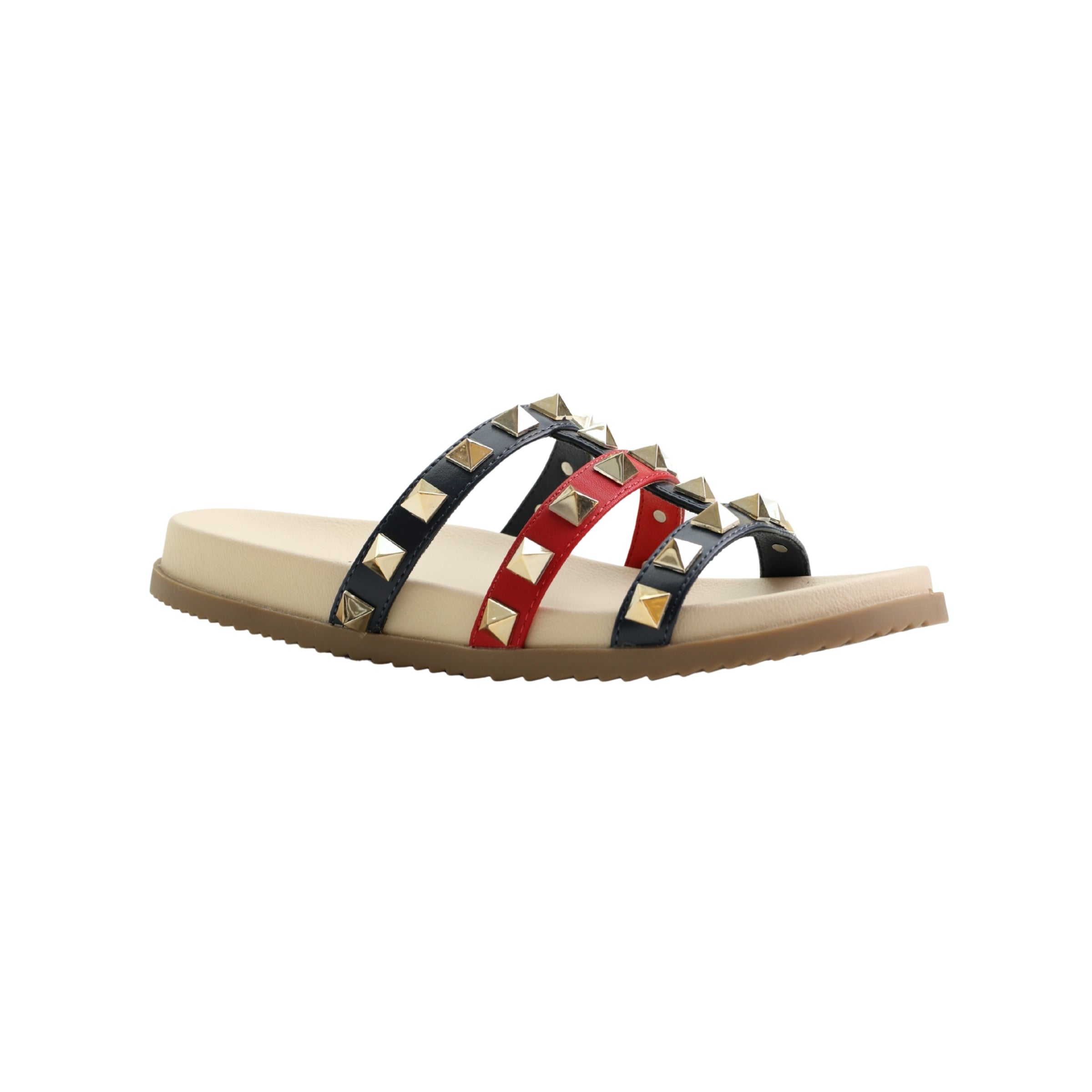 A stud-detailed slide sandal with three slim straps and a lightly raised profile, Pietas 3 MSA28 offers relaxed comfort with a 3.0 cm heel and 1.5 cm platform. The smooth footbed and textured outsole provide easy, everyday wear with a polished finish.
