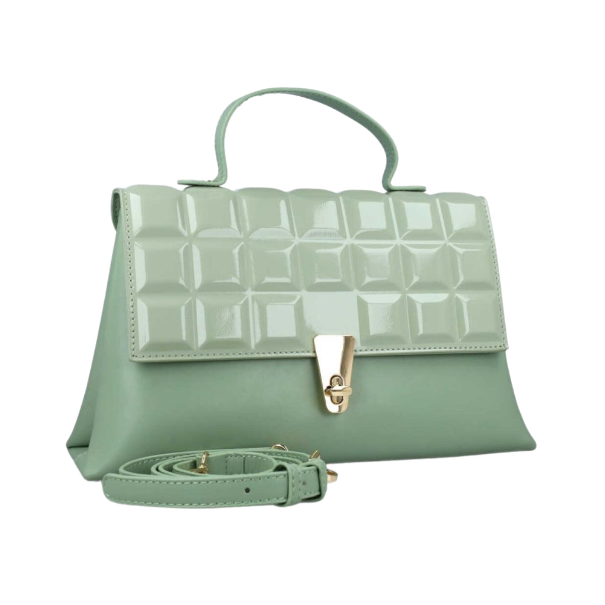 A structured top-handle bag from Menbur, Pisces MB52 features a cushion-quilted body in soft pastels with a polished turn-lock for neat, everyday elegance. Sized for daily essentials, it includes both a detachable chain and an adjustable crossbody strap for versatile carry from day to evening.