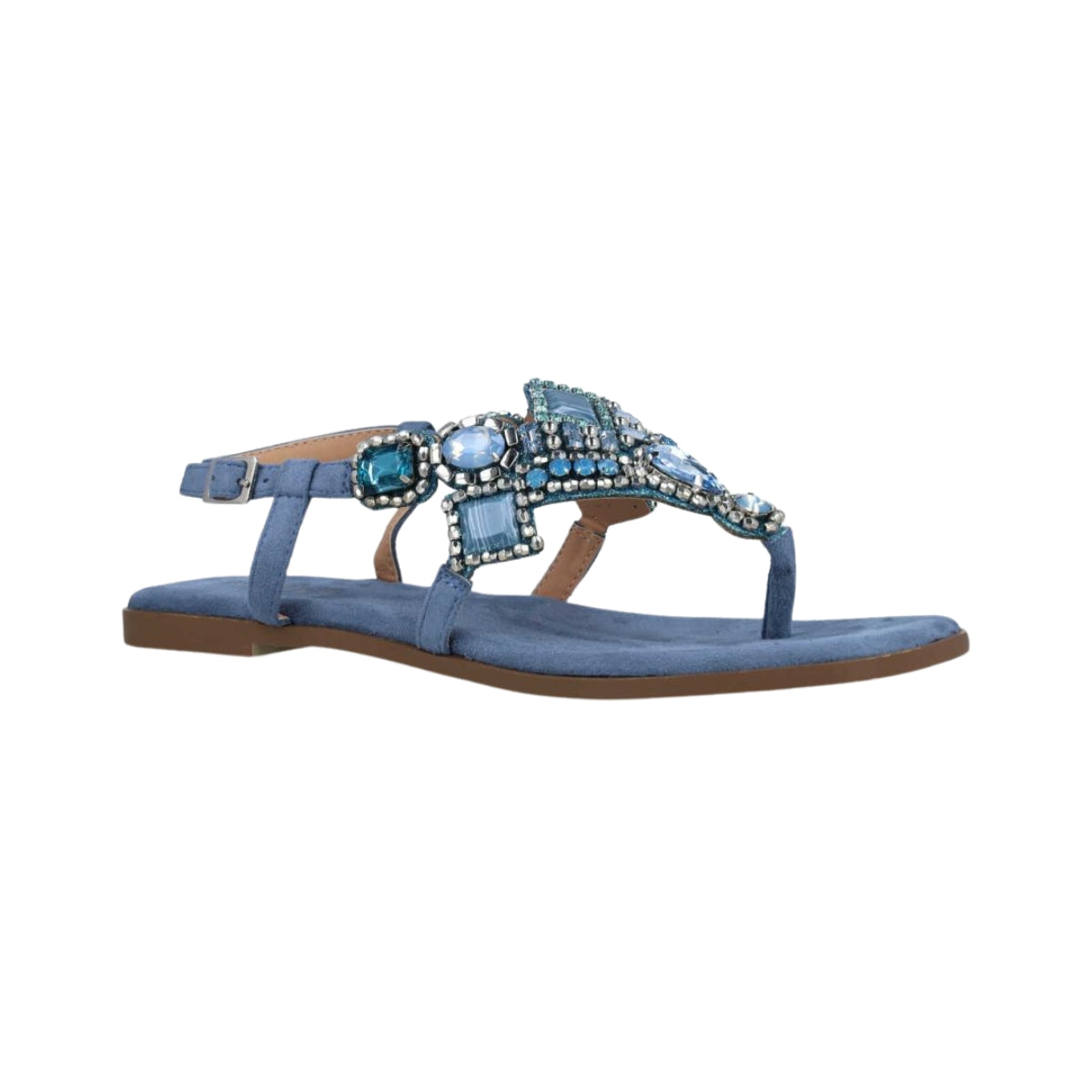 A refined toe-post sandal from Menbur, Poena MSA40 highlights a jewelled vamp with multicolour stones over a slim tan base for effortless summer polish. The flexible sole and low 1.0 cm heel keep it light and comfortable, while the ankle strap secures a graceful fit for day outings and relaxed evening looks.