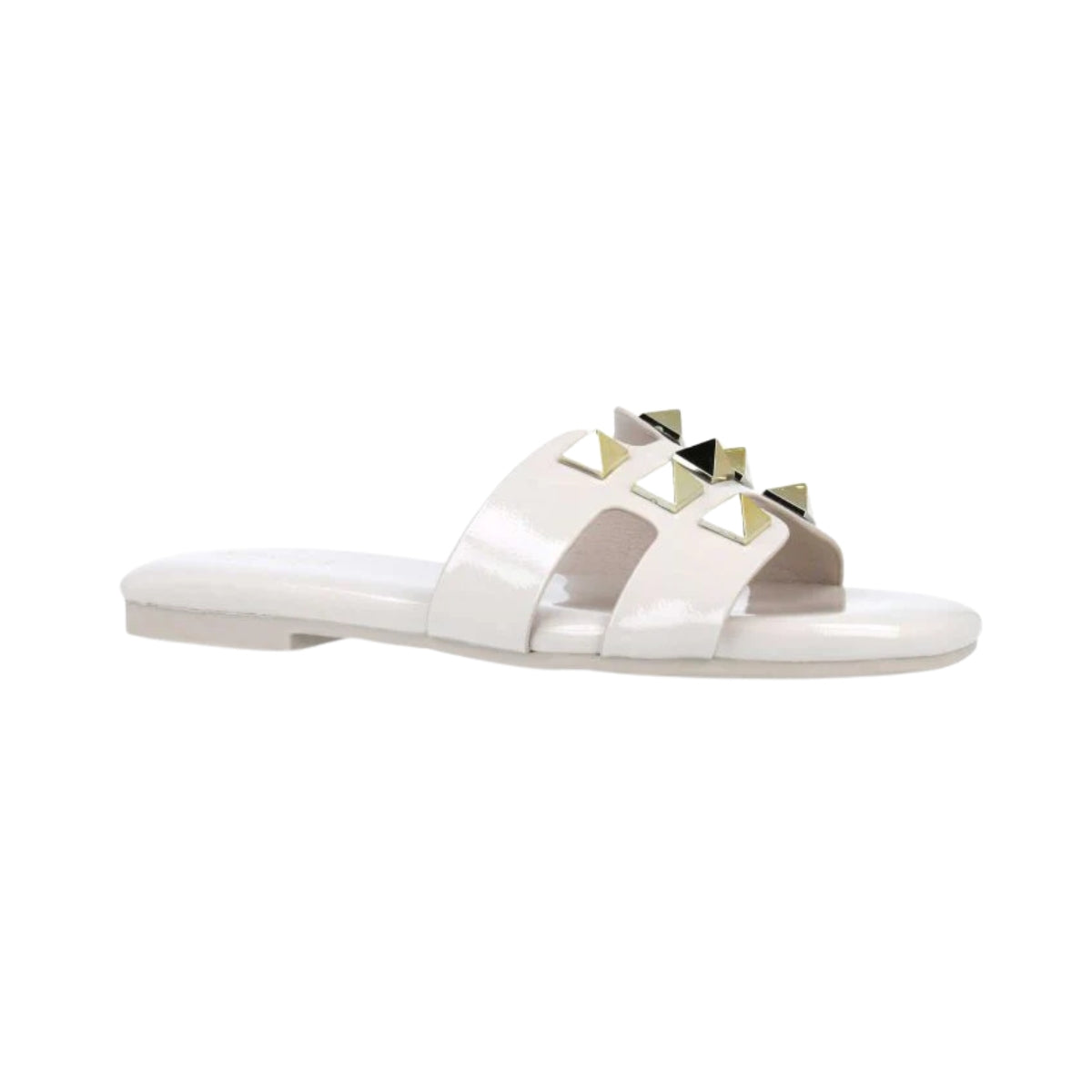 | Style | H-strap slide sandal with studs |