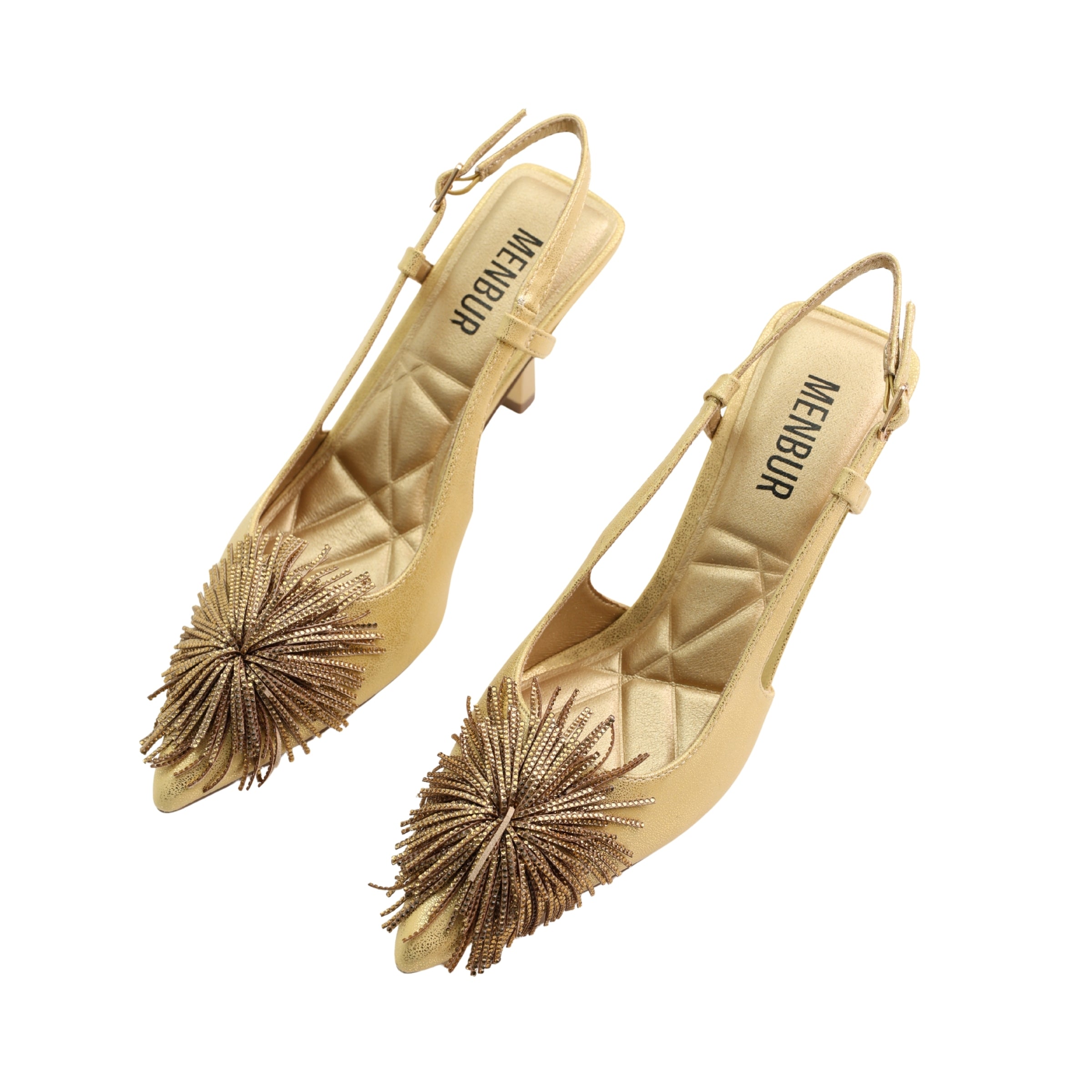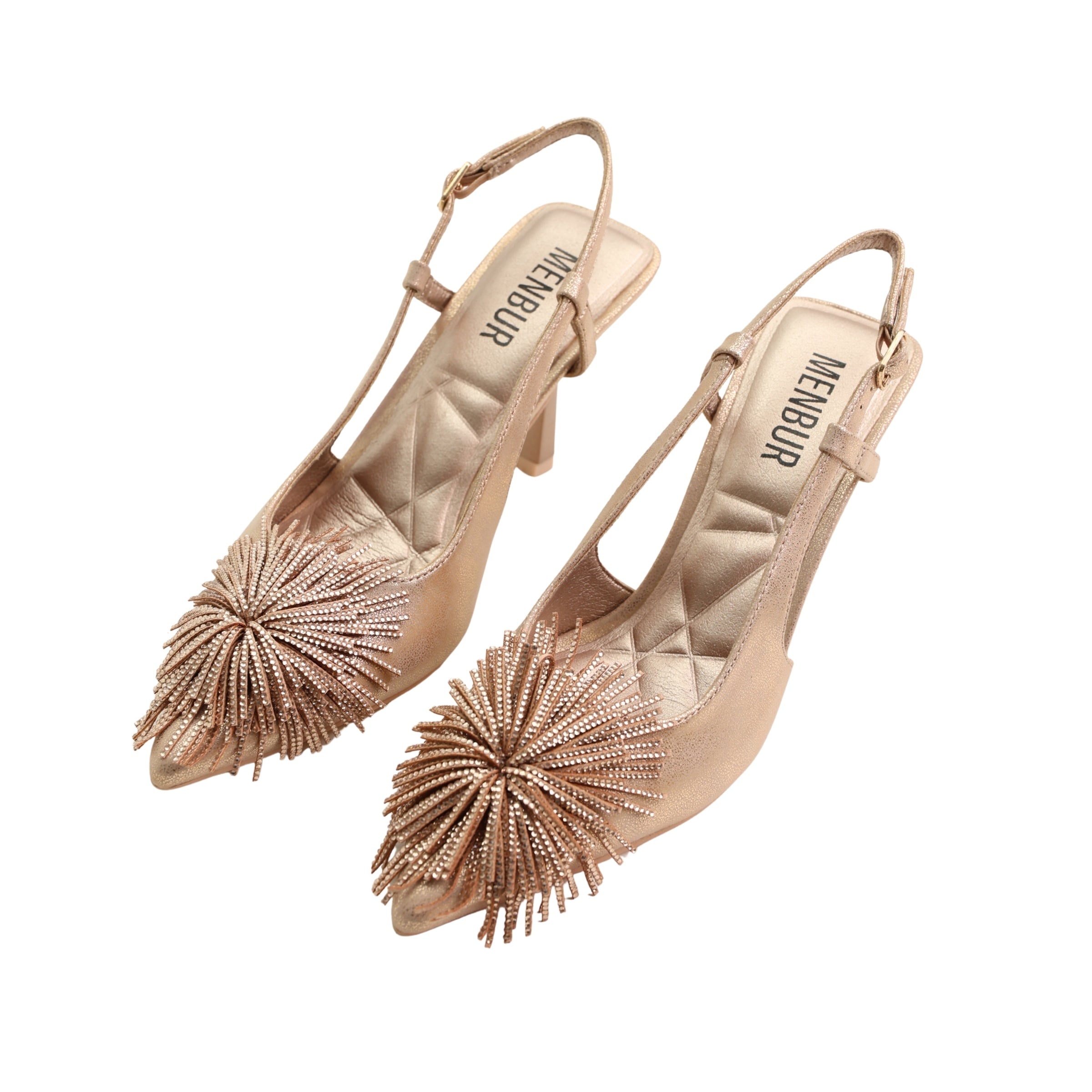 A mid-low slingback heel with a playful pom-pom toe, Vikingo 1 MM5 balances a polished profile with expressive texture. The 7.0 cm heel offers easy height, while the adjustable strap, cushioned footbed, and smooth lining provide comfortable, occasion-ready wear.